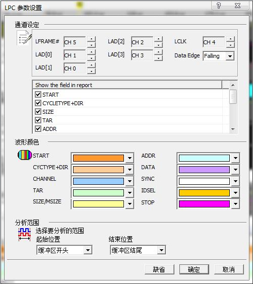 利用Acute PC based逻辑分析仪专有的LPC总线分析功能进行LPC参数设置: